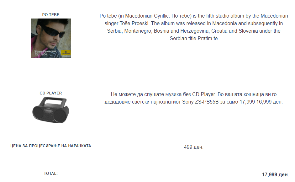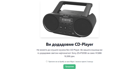 Овој тип на Dark Pattern се појавува најчесто на e-commerce веб-страниците, каде што во нашата кошничка автоматски се додава некој продукт кој што сме немале намера да го купиме, и единствен начин да го тргнеме е преку рачно откажување од тој продукт. Овој патерн е познат и како Negative Option Billing, и е нелегален во рамките на EU.